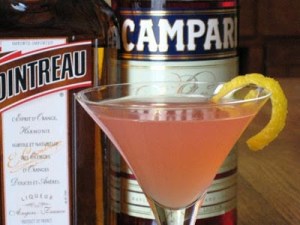 Don’t let the color fool you. With its gentle pink hue, the Jasminemay look as prissy and cute as a Hello Kitty armband, and its unassuming appearance and sprightly color has no doubt appealed to many drinkers of the once-ubiquitous Cosmo. But unlike that candy-colored alcopop, the Jasmine is all business, its alluring tint supplied not by the Cosmopolitan’s innocuous red cranberry juice but by the intensely garnet Campari, an Italian aperitif famous for its powerful bitter flavour and its racy advertising campaigns.