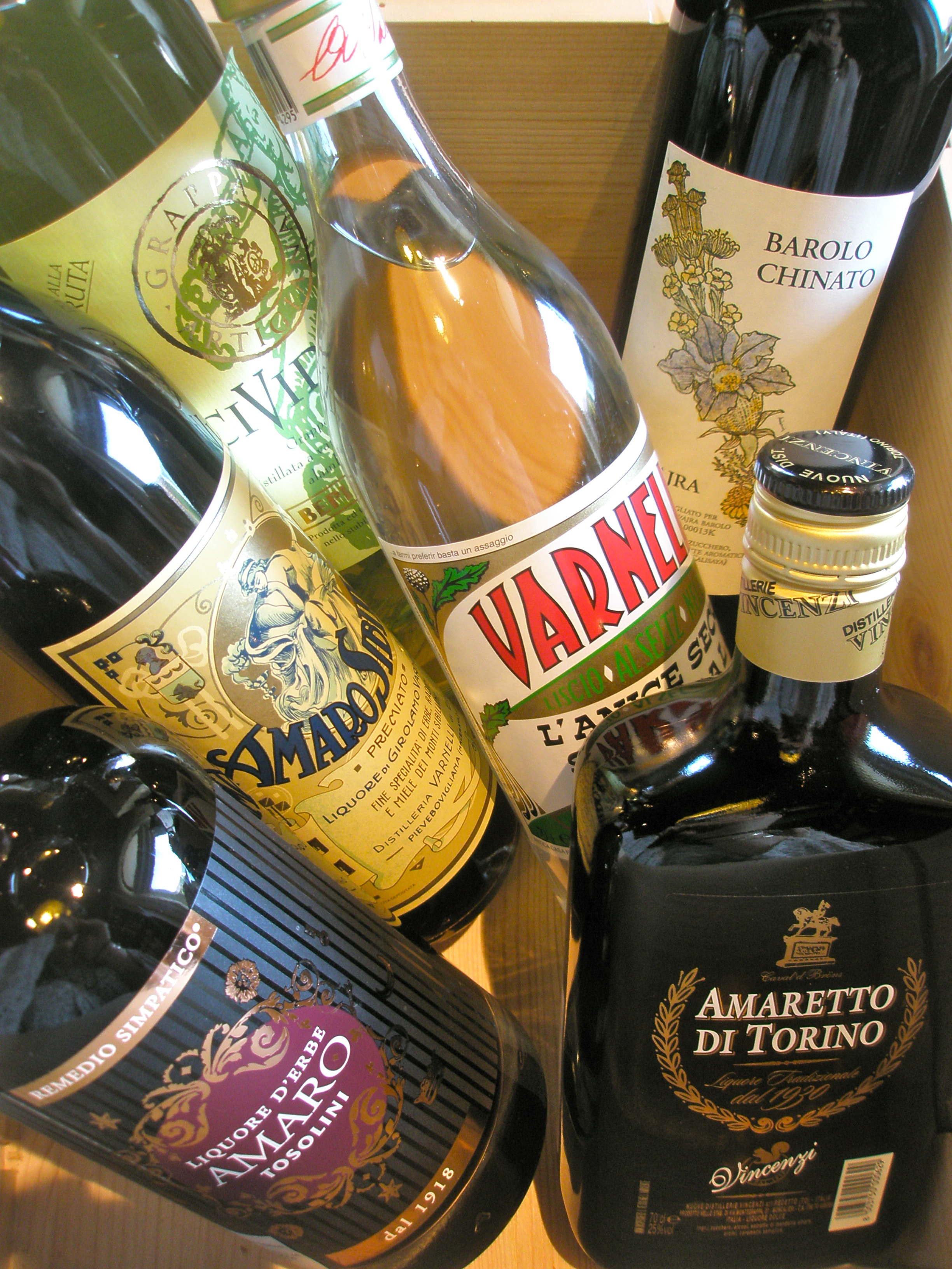 Montenegro | Amaretto | Fernet | Mirto | Amaro Nonino | Anice | Sibilia | Sambuca | Genziana root-based | Barolo Chinato | Grappa alla ruta | Coffee