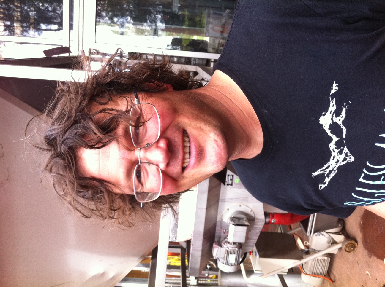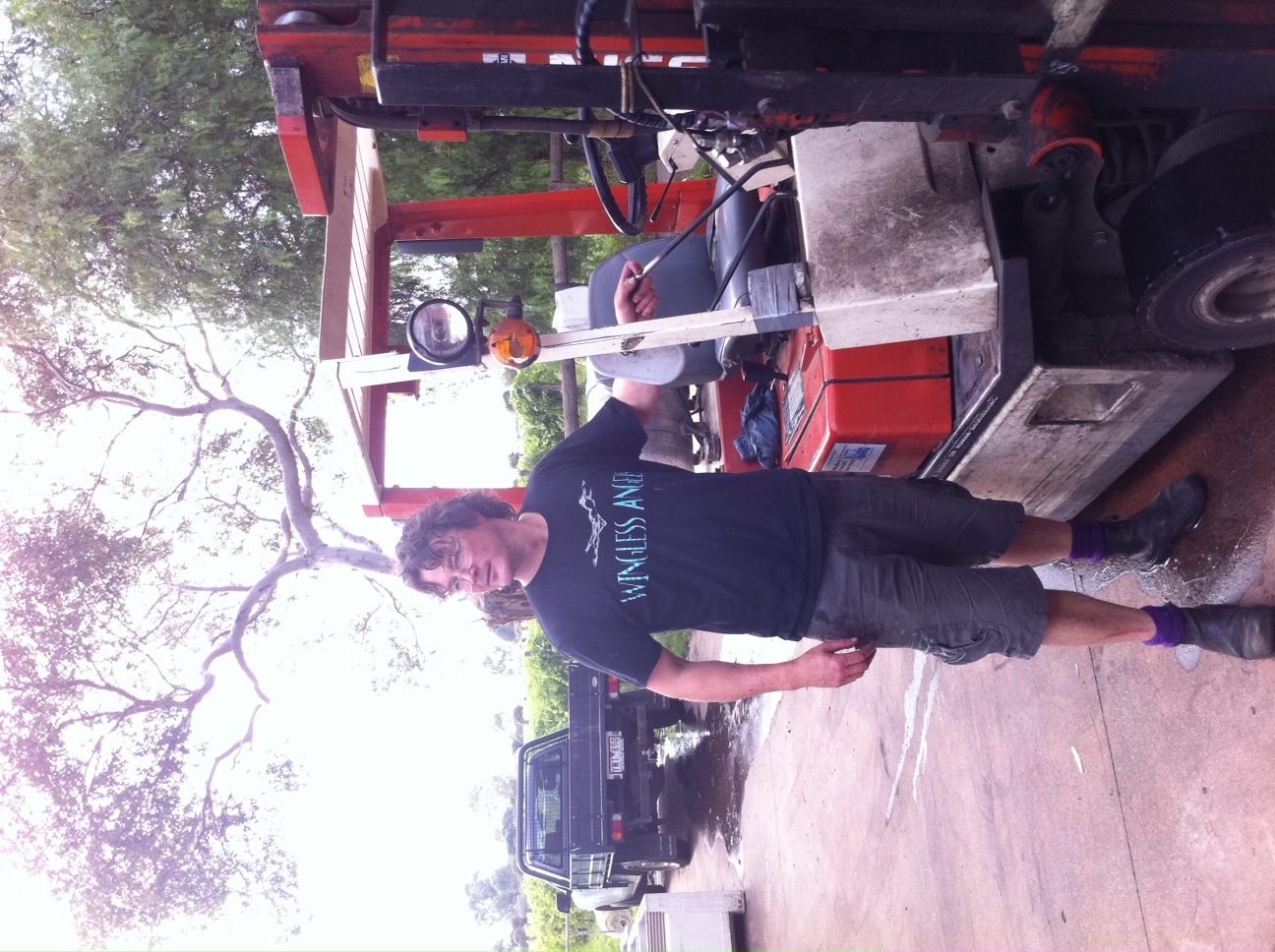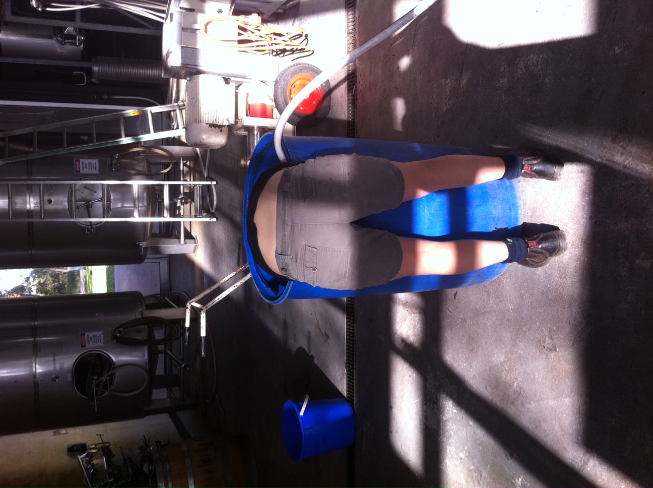 [A hazard when working in wineries…the infamous ‘Plumbers Crack’. Matt was only too happy to show me his.]