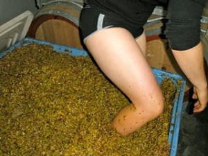 I asked Harry if we should plunge it down, but considering this bin is full of grape skins and not juice, it would be like trying to plunge concrete. He suggested the best thing would be to get in there…something I was all for and so offered my legs each morning over the weekend to plunge in the acid and yeast I’d inoculated it with. Don’t be grossed out, you won’t be drinking it, and it needs this contact to make sure I’m getting the yeast through everything before it really starts fermenting and then we need to fortify it with spirit!