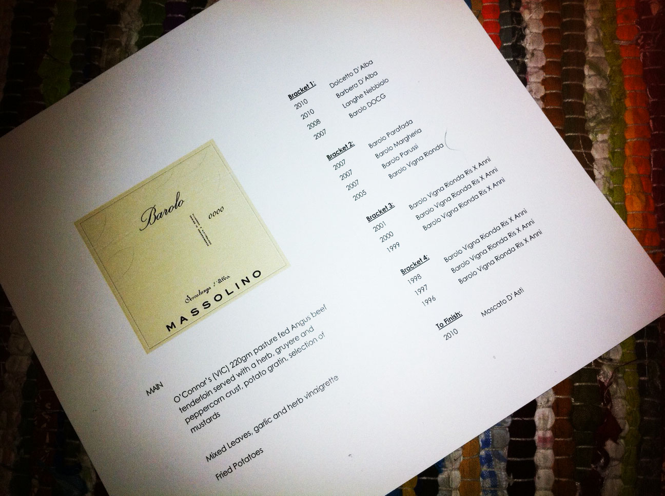 After a home-brewed coffee in the lab, a tour through the vineyards to see his nebb (nebbiolo vines) and a sip through and comparison of the Heathcote and Yarra Valley Nebbiolo in barrel, we were met with this: